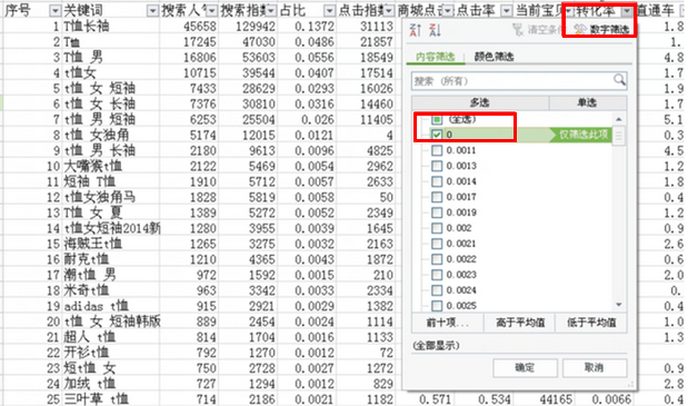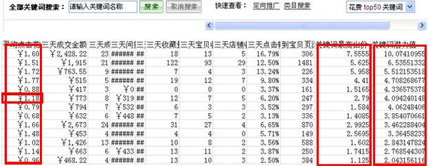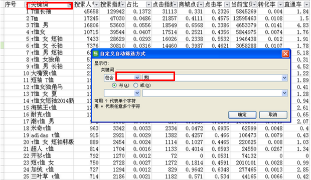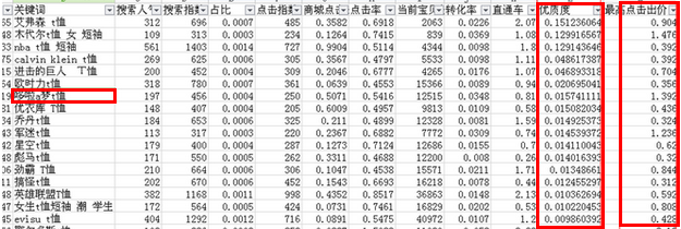 我們考慮直通車關(guān)鍵詞不虧本的情況下要做到:總毛利潤(轉(zhuǎn)化率點(diǎn)擊量商品單品毛利)總推廣費(fèi)用(PPC點(diǎn)擊量);從而得到:PPC轉(zhuǎn)化率單品毛毛利,直通車關(guān)鍵詞才不會虧錢。通過①②兩個(gè)公式篩選女裝t恤的關(guān)鍵詞:  首先我們選出一批關(guān)鍵詞,先剔除沒用的0轉(zhuǎn)化的關(guān)鍵詞,篩掉一部分詞。  刪除不相關(guān)的關(guān)鍵詞,選詞更精準(zhǔn)  然后用之前的①②公式,將關(guān)鍵詞進(jìn)行排序,篩選出優(yōu)質(zhì)度高,點(diǎn)擊扣費(fèi)接近關(guān)鍵詞最高點(diǎn)擊出價(jià)的詞。為什么這么說呢,優(yōu)質(zhì)度高那么說競爭小,接近關(guān)鍵詞最高出價(jià)說明有利于我們優(yōu)化。