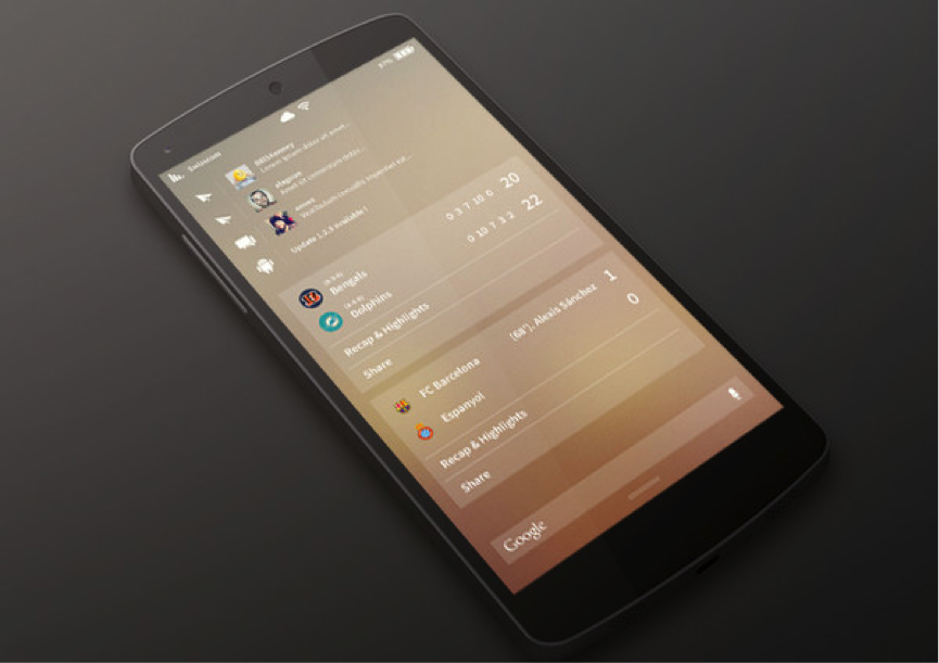 通知面板的設(shè)計(jì)巧妙地利用了溫暖的色彩,以使界面充滿更加積極的外觀。像上面的案例一樣,設(shè)計(jì)師也運(yùn)用了低透明的模糊背景和優(yōu)雅的小部件和諧共生。