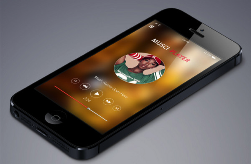 接下來是iOS 7的音樂應(yīng)用,這個(gè)方案里有個(gè)小而美的CD圖像,很適合放在這里。后面大面積暖色調(diào)的模糊背景為音樂播放器和控件組,提供了良好的氛圍。