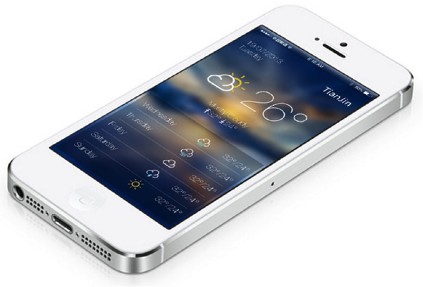 下圖是iOS 7天氣應(yīng)用 – 底下地圖像立刻給天氣變化帶來實(shí)時(shí)感,提供了一個(gè)相當(dāng)有價(jià)值的信息界面。輕微模糊的天氣場景增加了一種自然設(shè)計(jì)理念。