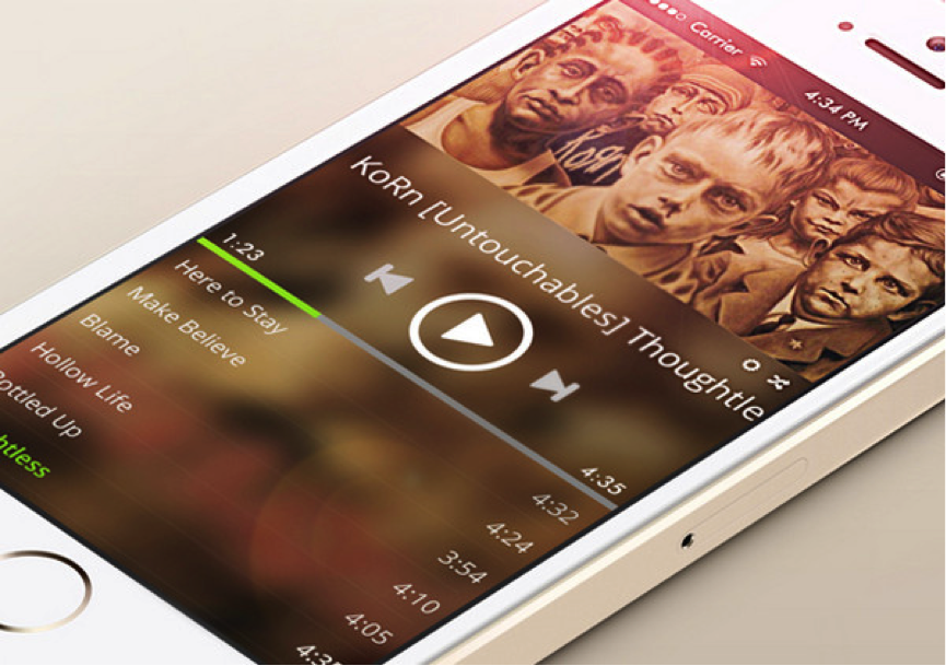 這個(gè)媒體播放器控制中心的樣式是一個(gè)常見形式,模糊的背景有助于有效地突出重要組成部分。