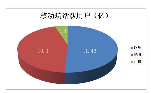 在對(duì)BAT在移動(dòng)端活躍用戶數(shù)量統(tǒng)計(jì)時(shí),由于手機(jī)淘寶并沒有公開數(shù)據(jù)可以查詢,于是通對(duì)手機(jī)淘寶在360手機(jī)助手、百度手機(jī)助手、豌豆莢等主流APP分發(fā)平臺(tái)的下載量粗略計(jì)算,手過機(jī)淘寶達(dá)到9.56億,支付寶錢包活躍用戶數(shù)量已達(dá)1.9億,總計(jì)達(dá)到11.46衣;手機(jī)qq與微信(含WeChat)月活用戶累計(jì)超10億;百度移動(dòng)搜索月活用戶1億,百度錢包僅為千萬級(jí)別。從移動(dòng)月活用戶數(shù)量來看,百度對(duì)阿里、騰訊根本無法構(gòu)成威脅,后者阿里與騰訊之間可謂旗鼓相當(dāng)。