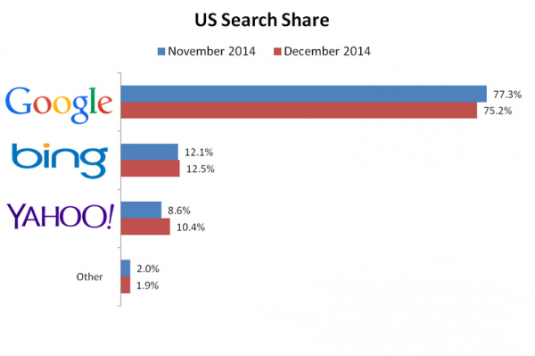 Google在美國搜索市場的份額跌落至自2008年以來的最低值,更關(guān)鍵的是,雅虎則創(chuàng)下自2009年以來的最高值。